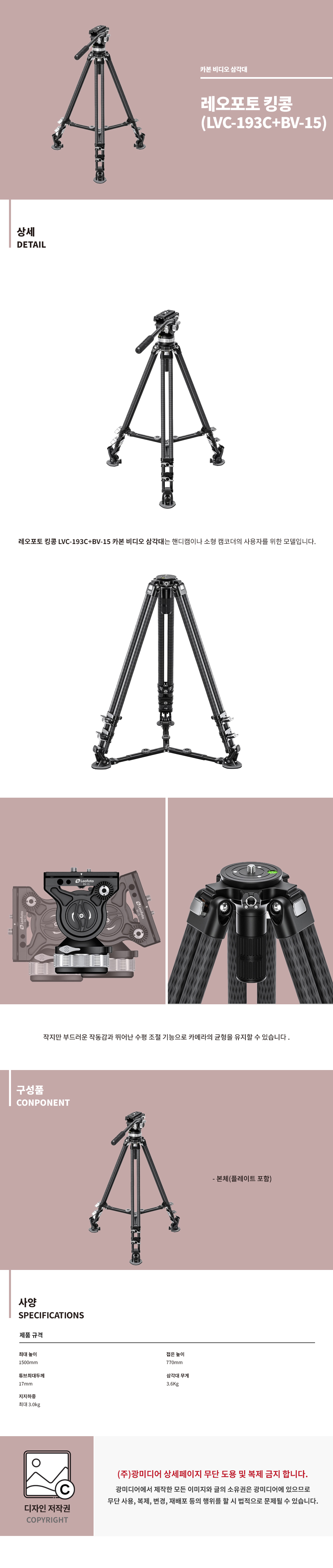 기본) Leofoto 킹콩(LVC-193C + BV-15) 카본 삼각대