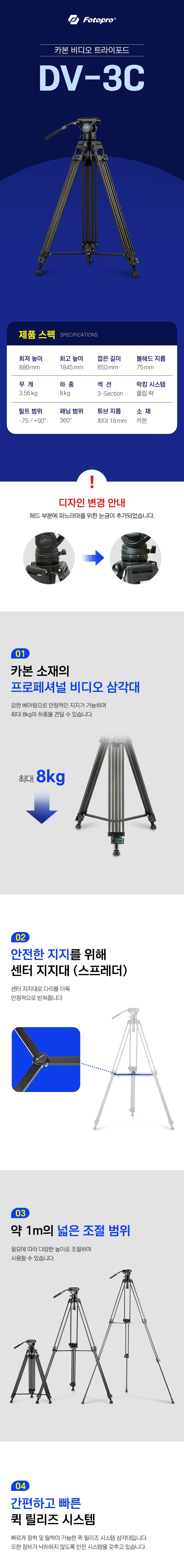 기본) Fotopro DV-3C 카본 삼각대
